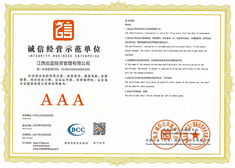 诚信经营示范单位