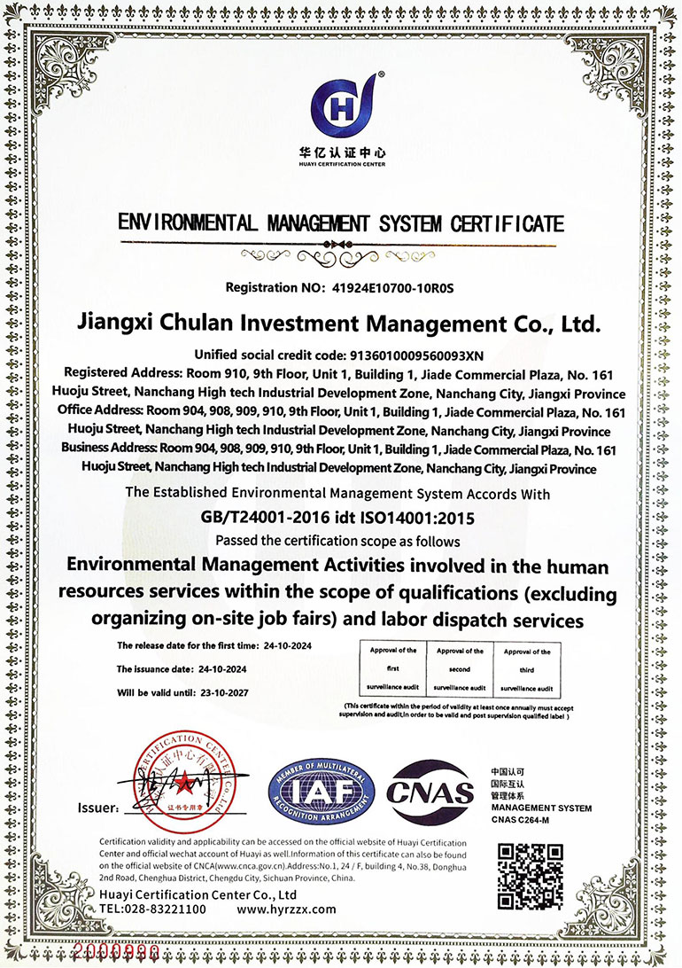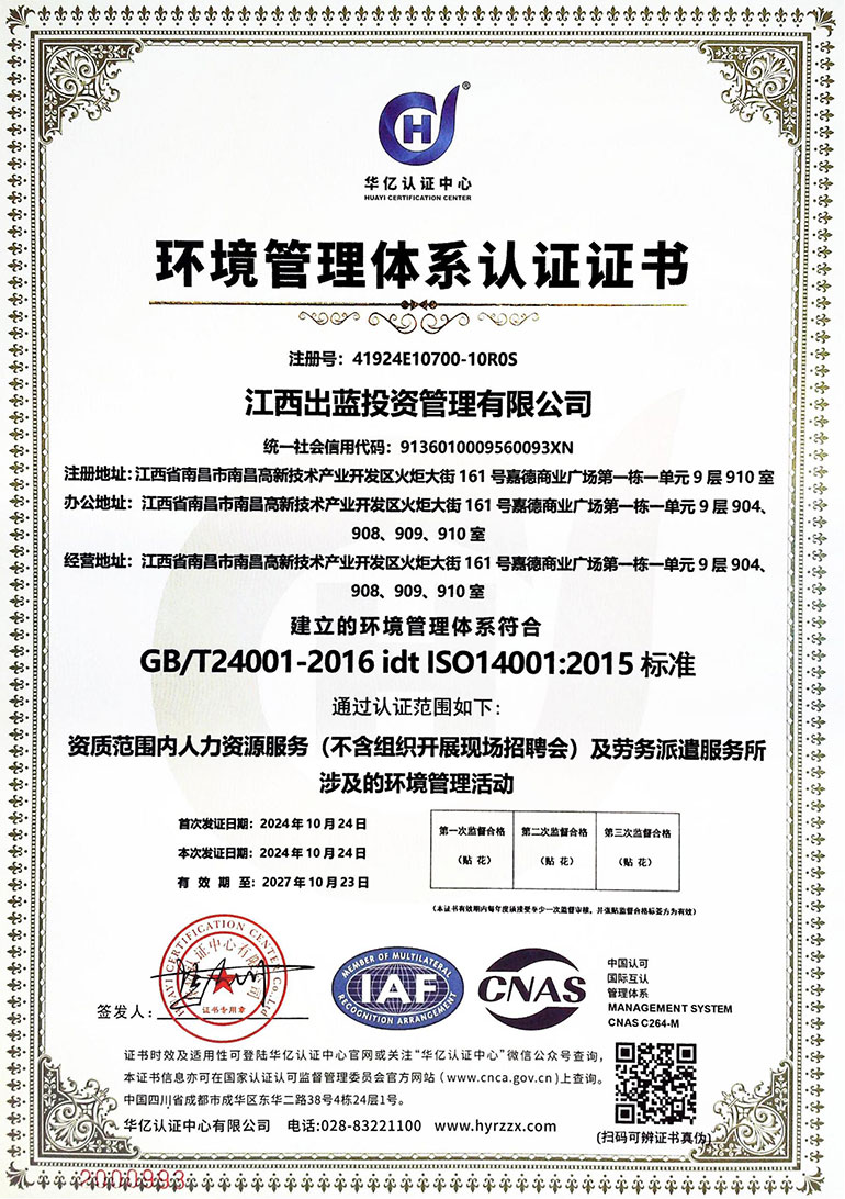 环境管理体系认证证书